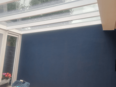 Openslaande deuren zorgen voor een directe verbinding met de tuin, terwijl de ruimte binnenin volledig is afgewerkt en klaar voor gebruik. Een praktische uitbreiding van de woning die het hele jaar door comfort biedt.